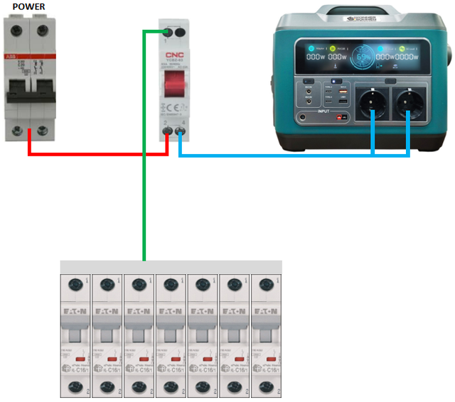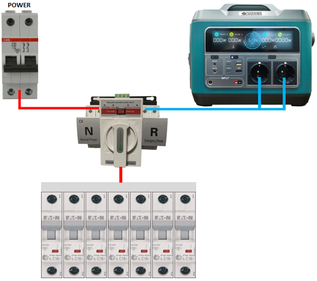 Найбільш бюджетна реалізація підключення портативної станції EcoFlow заснована на монтажі ручного перемикача введення-резерву за тим же принципом.