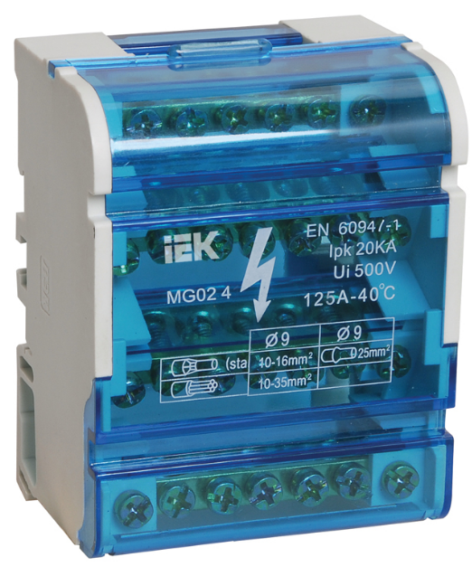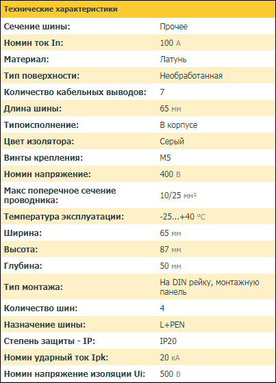 Шини виконані з високоякісної латуні, задня панель ізолююча і прозора захисна кришка виконані з самозатухаючого пластику.
